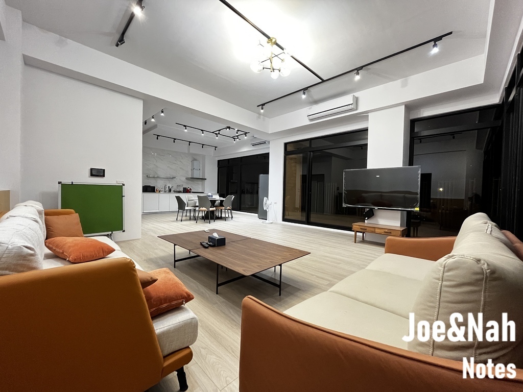 3.二樓客廳空間遼闊,非常適合包棟,享受闔家同樂的共感、也有廚房家電可以做簡易的烹煮。